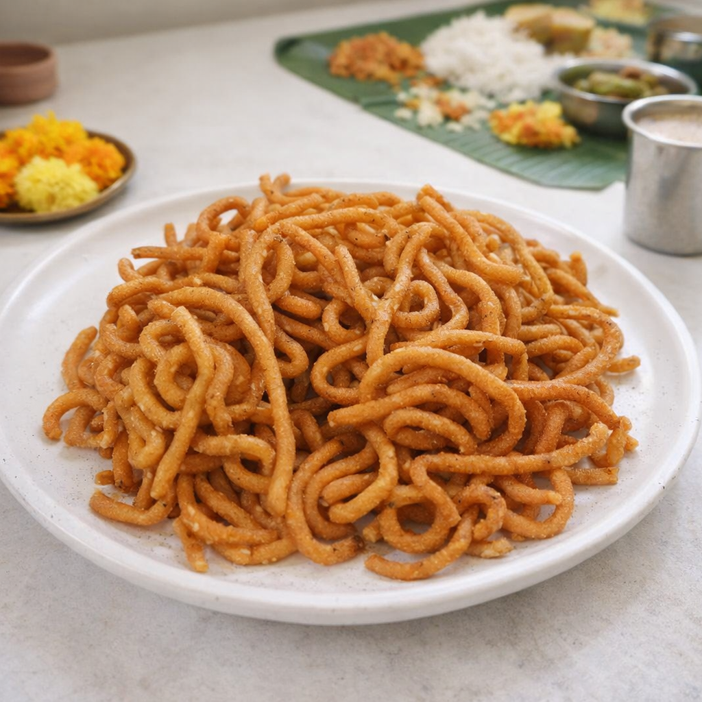 Prepared using age-old Andhra recipes, our Jonna Murukulu delivers a crispy texture, rich aroma, and mild spicy flavor that makes it perfect for tea-time, festive gifting, or everyday snacking.